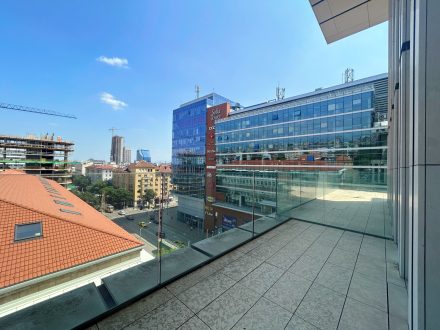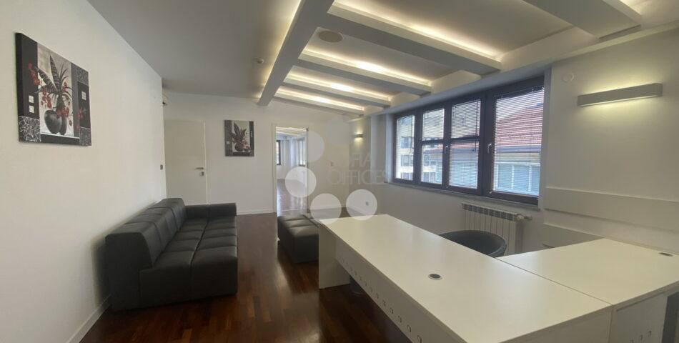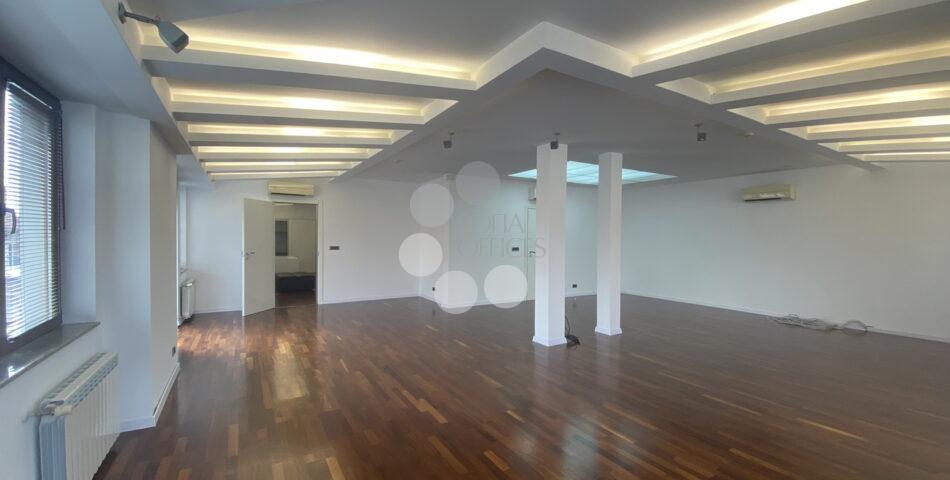Офисът разполага с голямо фоайе с място за рецепция, едно голямо отворено помещение, 3 по-малки работни помещения, отделна кухня, 2 малки тераси с красиви гледки, складово и 2 WC.