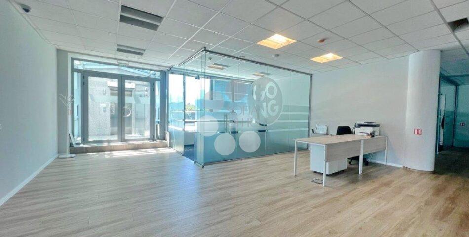 Офисът е с двоен под и окабеляване в подови кутии, отваряеми прозорци, окачени тавани и преграждане със стъклени стени. Ще бъде освежен с нова настилка и пребоядисване на стените.