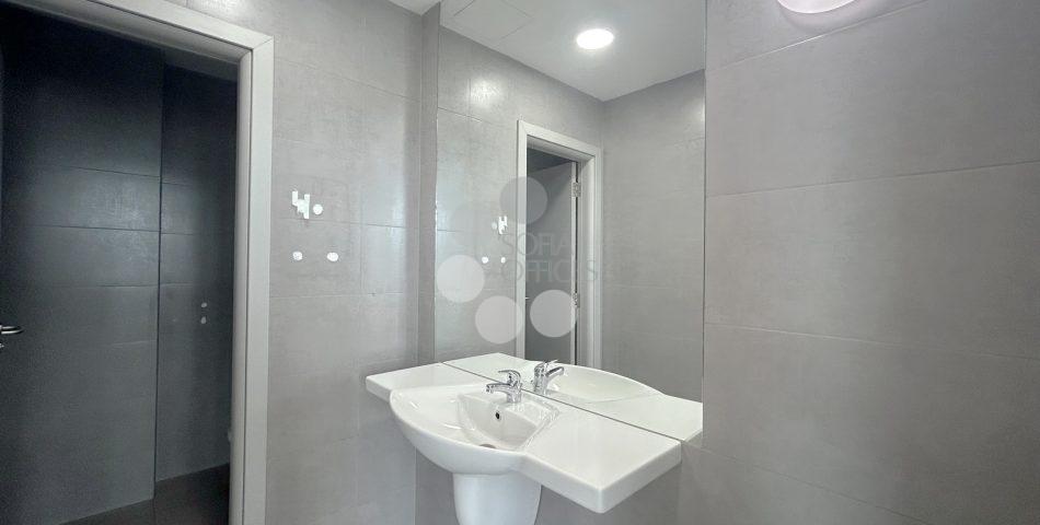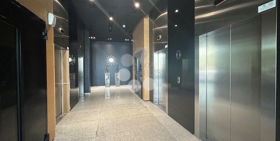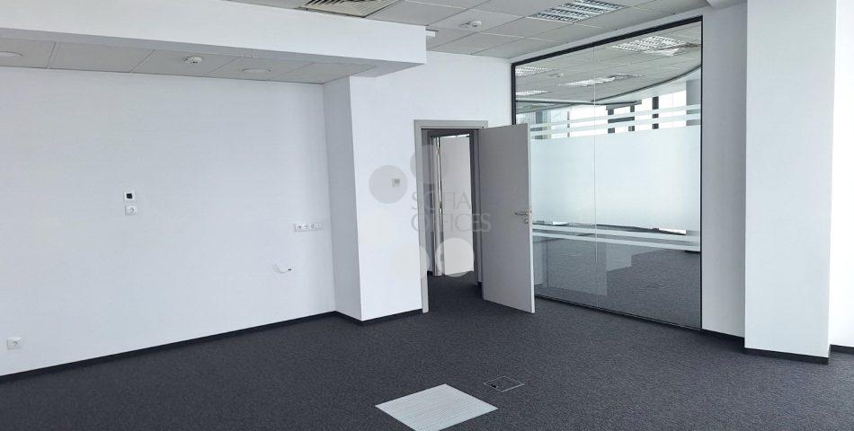 Офисът е разположен на висок етаж в офис сградата и предлага следното разпределение: open space зона, 2 работни помещения и WC. Има обособено място за кухненски бокс. Офис разпределението може да бъде променяно, съгласно нуждите на наемателя. Офисът е с отваряеми прозорци, окабеляване в подови кутии и вътрешни щори.