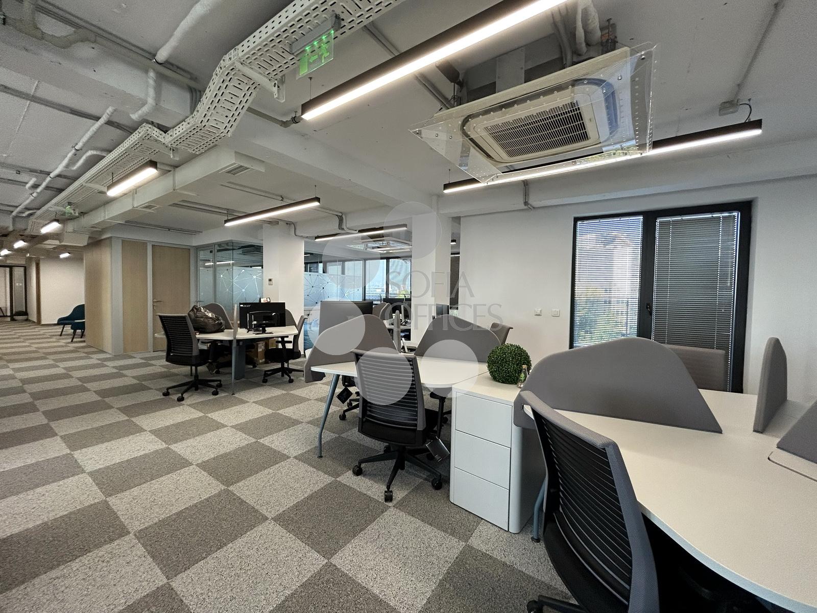 Sofia Offices предлага изцяло обзаведен офис под наем в престижния квартал Изток, само на няколко метра от метростанция Жулио Кюри и на 5 мин с кола от София център. Просторен, светъл и модерен, този офис клас А се намира в една от най-представителните бизнес сгради в района около Интерпред Изток.