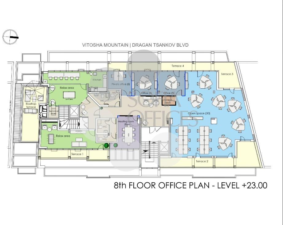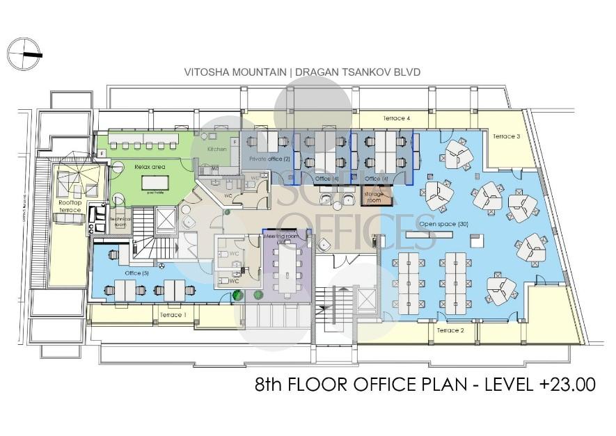 Площта на терасата не е включена в площта на офиса от 387 кв.м. Наем за терасата 9 Евро/кв.м