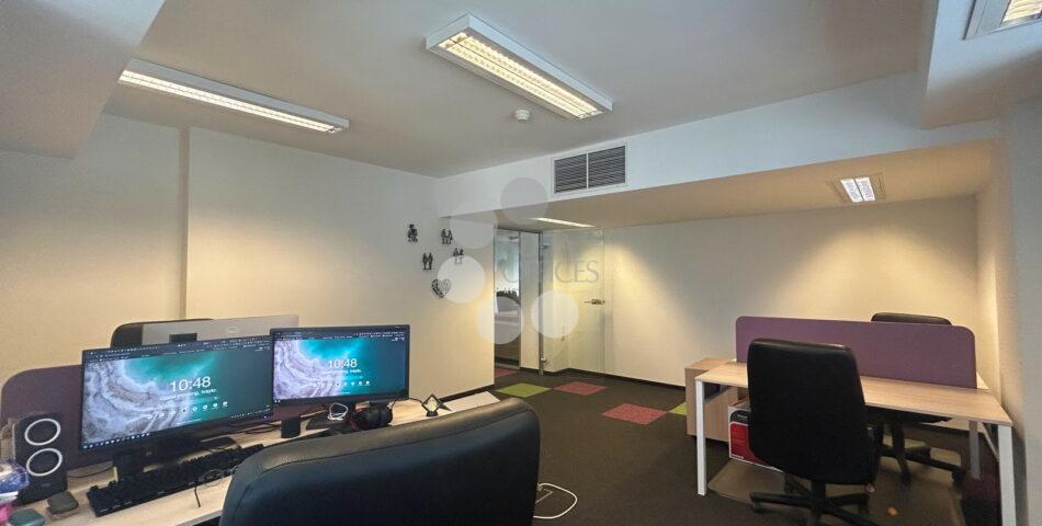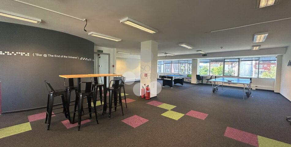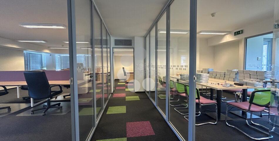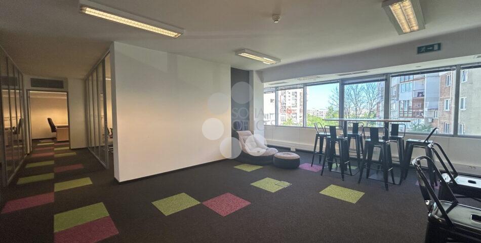 Офисът заема цял етаж от бизнес центъра и предлага голямо опън спейс пространство с кухненски кът, заседателна зала, две самостоятелни работни помещения, голямо сървърно с място за складиране, малка тераса и 2 WC.