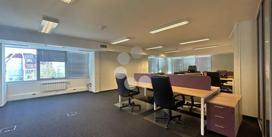 Наемайки този офис под наем, разположен на метри от бизнес парк София, имате възможността да ползвате по-бюджетен офис, но да се възползвате от всички допълнителни услуги, които Бизнес парк София предлага, включително ресторанти, места за срещи, банки, застраховаетелни услуги, копирни услуги, нотариус и пр, в съчетание с комуникативна локация с бърз достъп до Околовръстно шосе и бул. Александър Малинов и само на 5-6 минути пеша от метро.