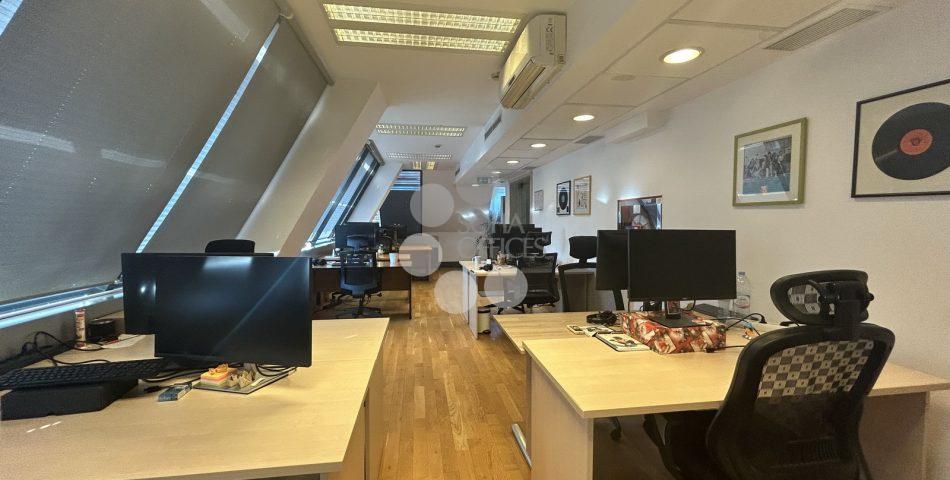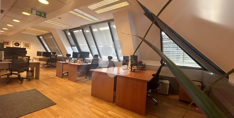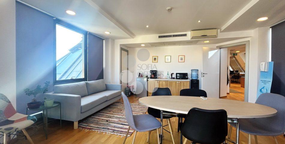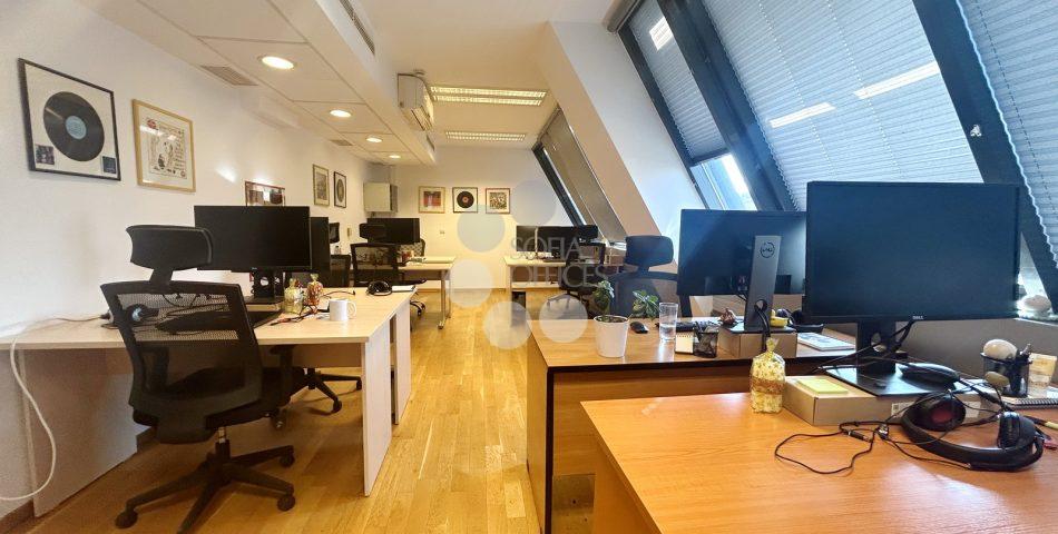 Разположен на висок етаж в офис сграда клас А в центъра на София, този офис под наем предлага красиви гледки и много естествена светлина в работните помещения.