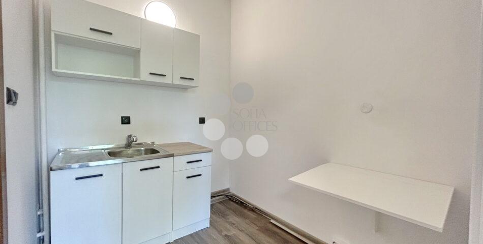 Състои се от преддверие, 3 работни помещения, кухненски бокс, голяма тераса, която е бонус към офиса и не влиза в квадратурата от 89 кв.м и санитарен възел. Офисът е климатизиран, има и ТЕЦ, както и инсталиран СОТ и интернет окабеляване.