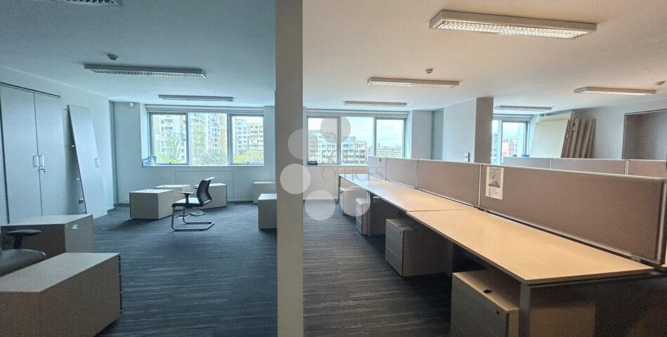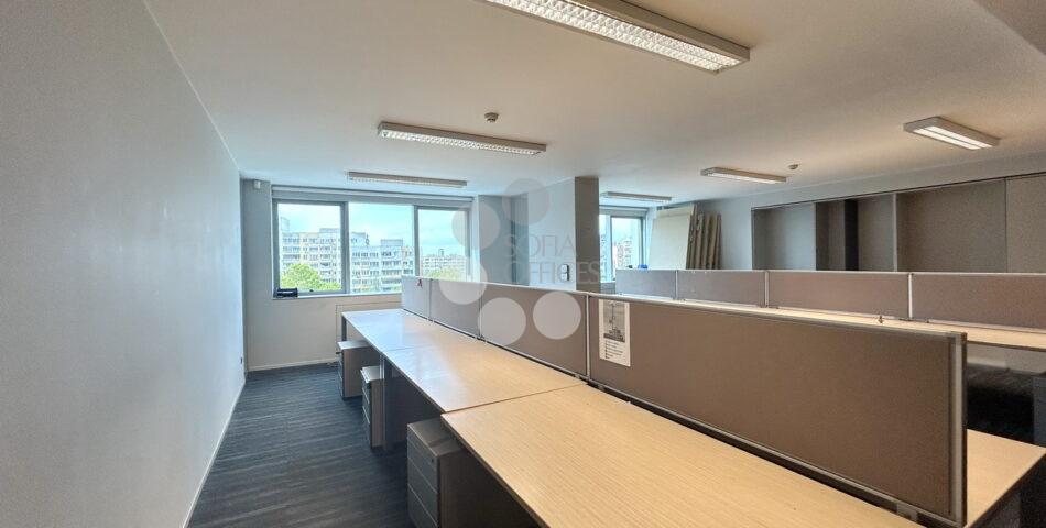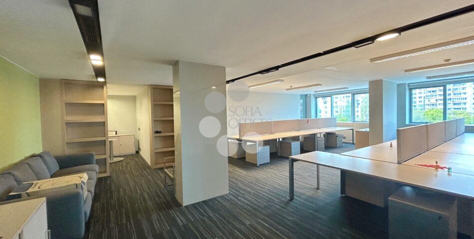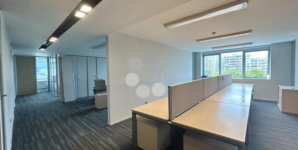 Този open space офис заема почти цял офисен етаж в офис сграда клас А на бул. България само на 5 минути с кола от самия център на София и бул. Витоша. В момента офисът разполага с open space зона и няколко различни по големина офис помещения, преградени със стъкло и гипсокартон. Офисът може да бъде изцяло open space или с други преграждане, съгласно нуждите на наемателя.