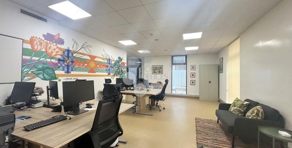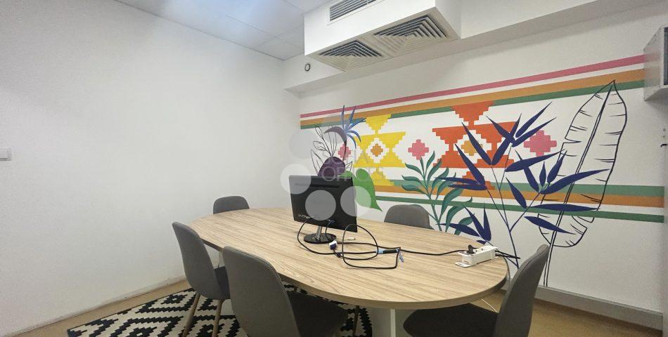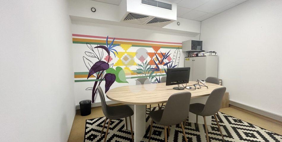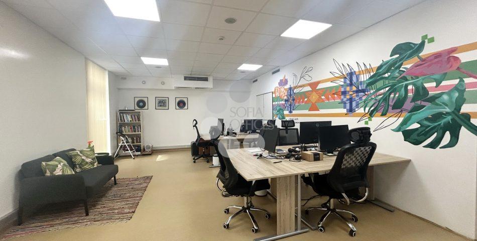 Офисът разполага с голямо отворено пространство с френски прозорци и една заседателна зала. Санитарните възли са общи на етажа и не влизат в квадратурата на офиса.