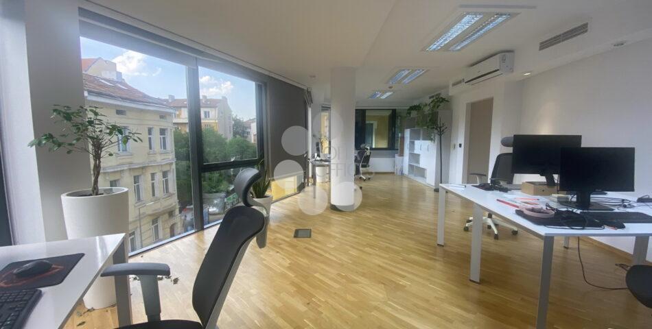 We offer for rent this spacious, class A office in Sofia center next to a metro station and TZUM. The office is located in a representative class A office building with reception, security and many additional extras, on just 3 minute walk from Serdika metro station and Vitosha Blvd.