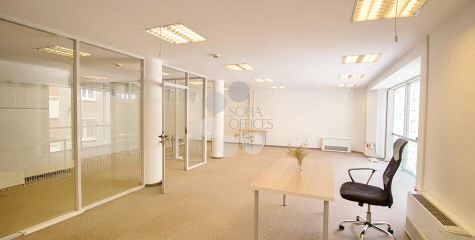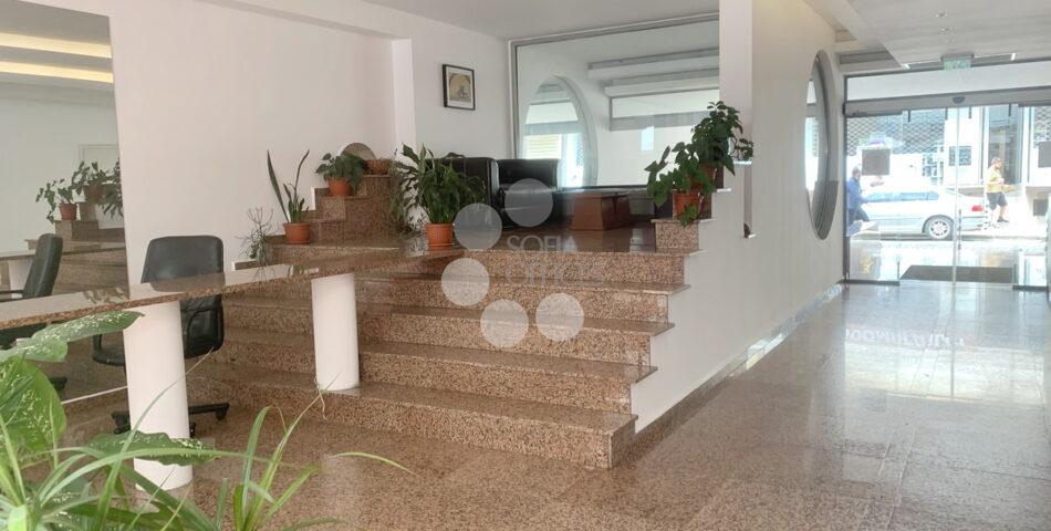 The office for rent with a terrace is in a business building in the top center of Sofia, 3 minutes from the pedestrian part of Vitosha Blvd and NDK metro station.