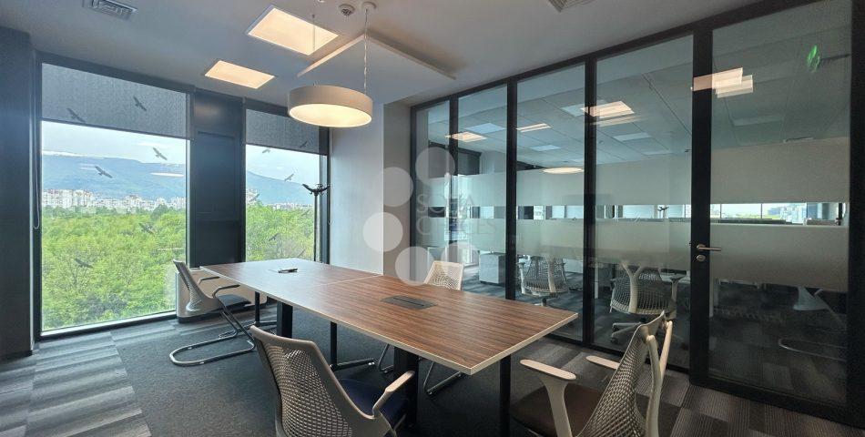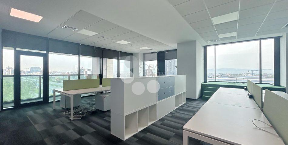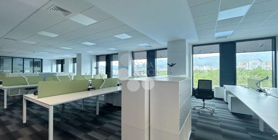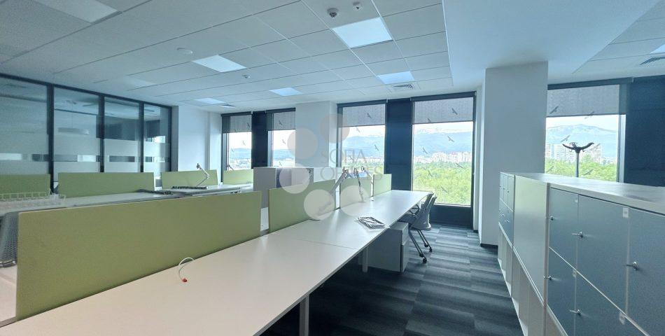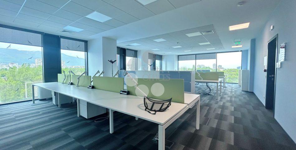 Open space офис под наем в представителна офис сграда клас А на метри от метростанция Интер Експо център. Офис, който ще предаде представителна визия на вашия бизнес и възможност за по-творческа работна среда и добавена стойност към ежедневието на служителите благодарение на зелените пейзажи и просторни гледки от офис помещенията.