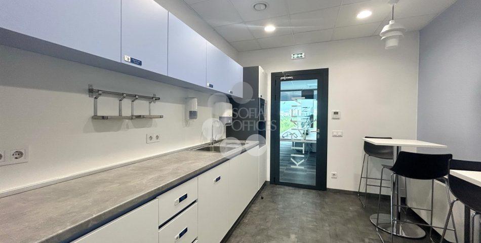 Офисът разполага с две големи и отделени една от друга опън спейс зони, заседателна зала, сървърно, самостоятелна кухня с място за хранене, тераса и WCs. Офис площта позволява лесно разделяне на офис пространството и обособяването на допълнителни кабинети в него.
