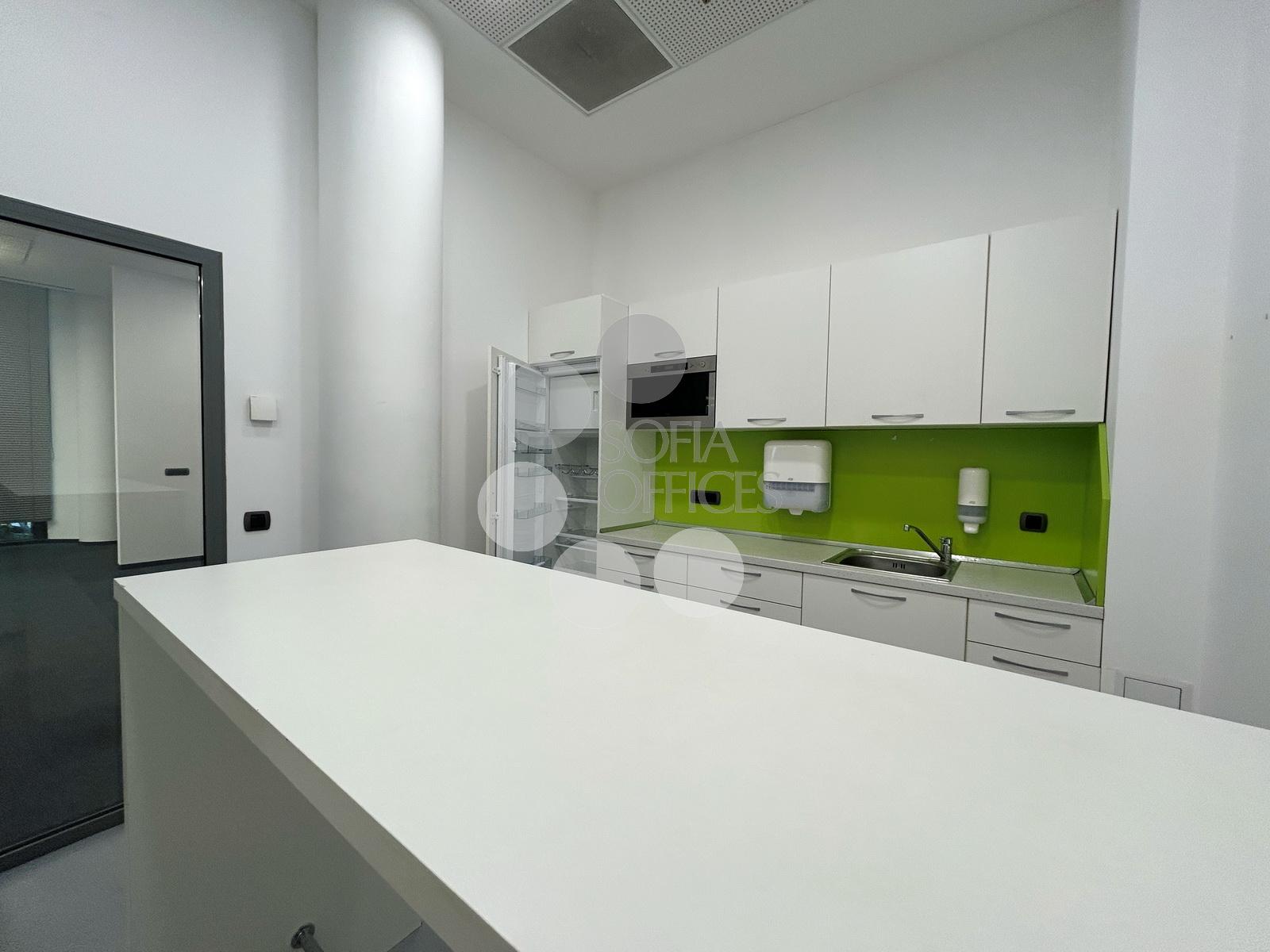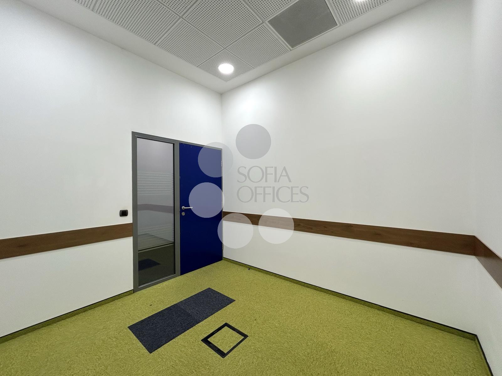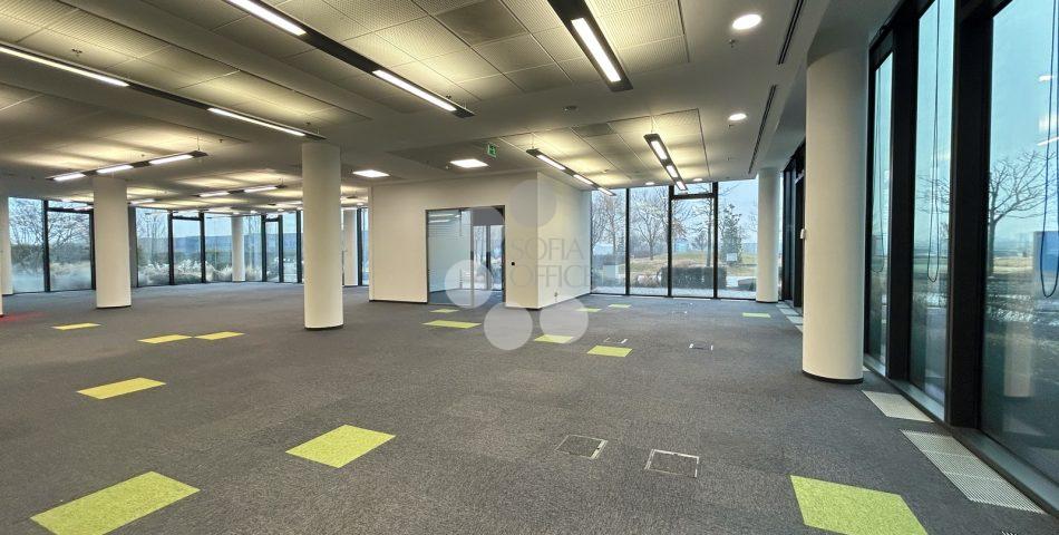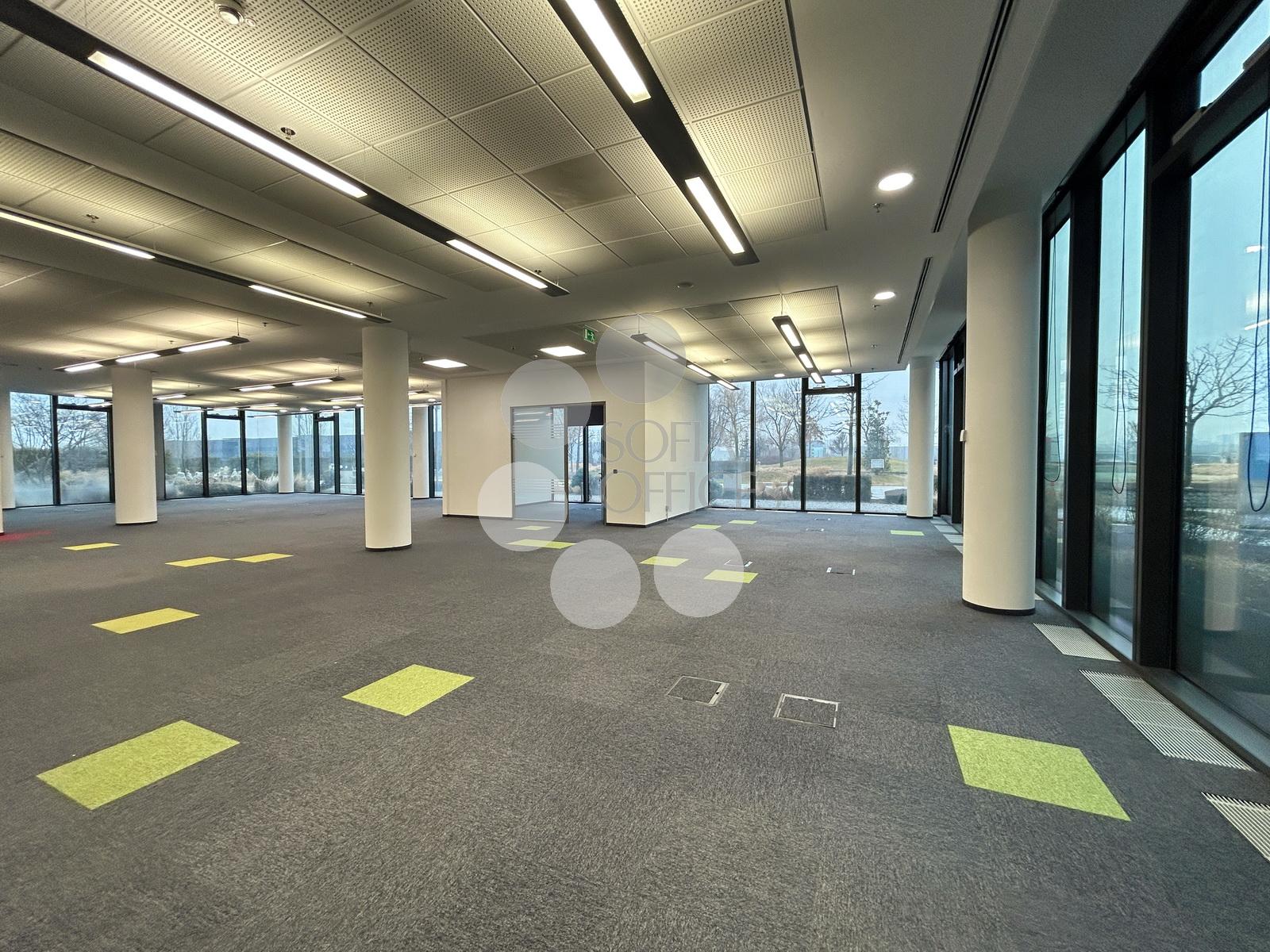 Sofia Offices presents this open space office for rent near Sofia Airport, located in a representative Class A office building within a modern business park. The office features southern exposure, is situated on the ground floor, and is surrounded by lush landscaping. The green environment, combined with high French windows and abundant natural light, creates a sense of openness and a direct connection to nature – a rare advantage for office space for rent in Sofia.
