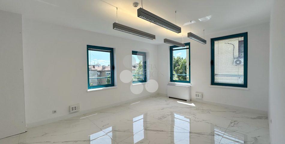 We offer this open space office for rent next to NDK with views of the trees and greenery of the park in front of NDK. The office is located on a high floor in an office building in the top center of Sofia and a 3-minute walk from Vitosha Blvd. and NDK metro station.