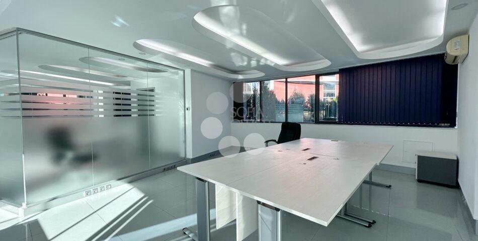 The office consists of an open space area, a director’s cabinet with its own bathroom, a separate kitchenette with a dining area and a relax area and 2 WCs. The office may have a different layout than the current one depending on the needs of the future tenant. It has openable windows.