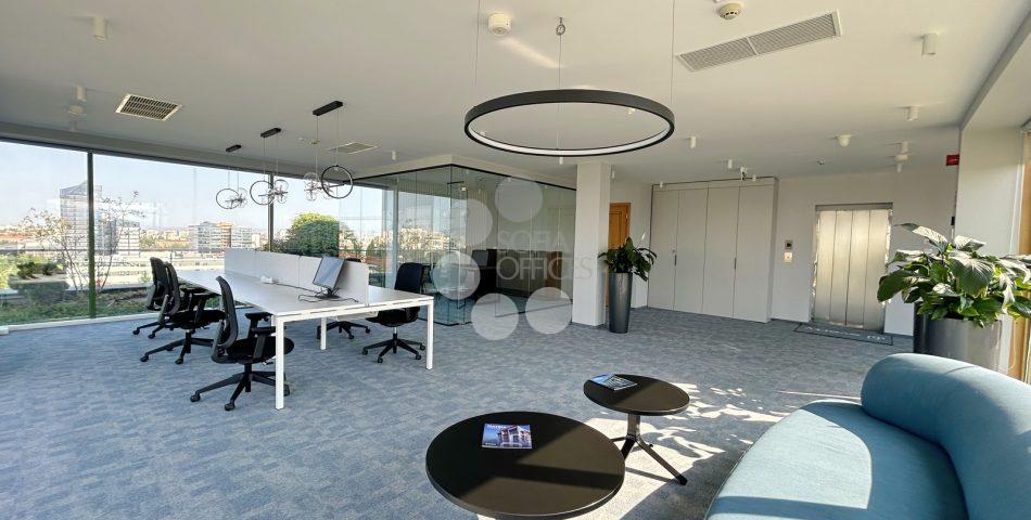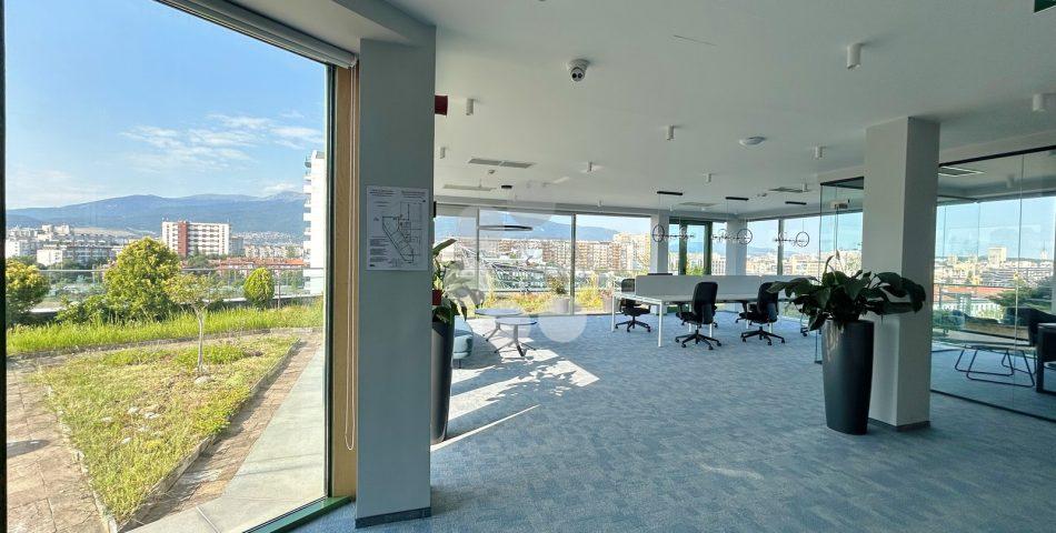 SofiaOffices is offering for rent a fully furnished Class A office with a unique 360-degree panoramic terrace in a modern office building, located right next to Sofia Tech Park and Tsarigradsko Shose Boulevard.